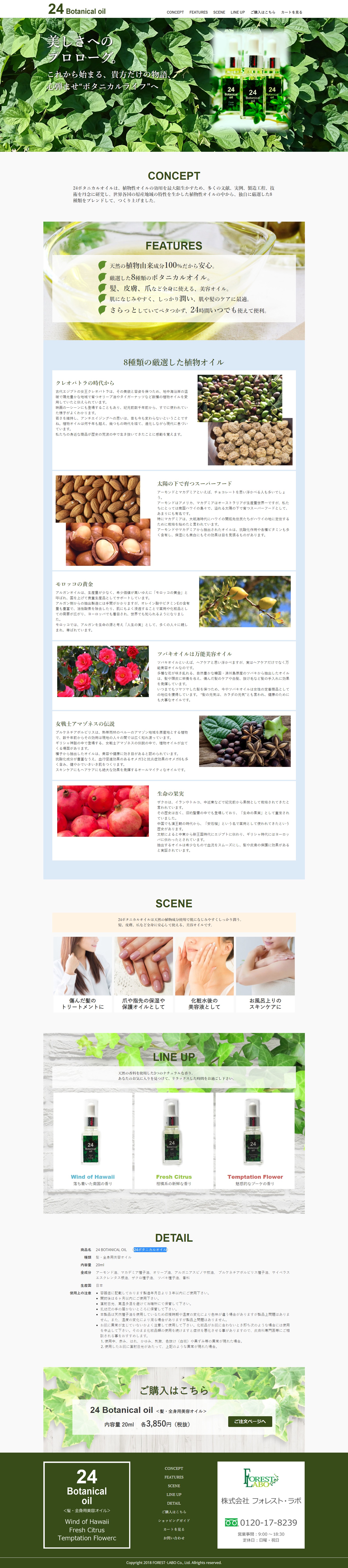 株式会社フォレスト・ラボ 様 化粧品メーカーの株式会社フォレスト・ラボ様の新商品用LPです。 制作年月 2018年6月 カテゴリー Web Design 制作環境 Illustrator, Photoshop, Bootstrap サイトURL http://www.forest-labo.com/products/24botanicaloil/24botanicaloil-hawaii.html おしりふき・ウェットシリーズ 超純水を99%以上使用した、 新生児からのおしりふきと ウェットティッシュのシリーズ。